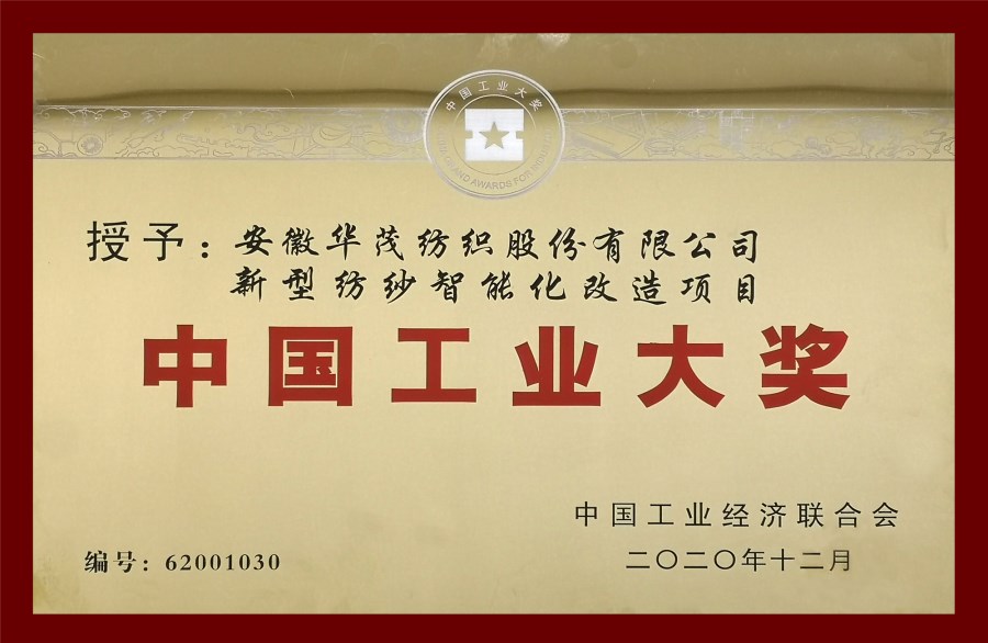 12月27日上午,從北京召開(kāi)的第六屆中國工業(yè)大獎發(fā)布會(huì )上傳來(lái)喜訊,由安徽華茂申報的新型紡紗智能化改造項目榮獲“中國工業(yè)大獎”。中國工業(yè)大獎是我國工業(yè)領(lǐng)域最高獎項,獎項的獲得是對安徽華茂在以制造強國為己任、以產(chǎn)業(yè)報國為初心,堅持自立自強,走中國特色創(chuàng )新發(fā)展、綠色發(fā)展新型工業(yè)化道路等方面做出突出成績(jì)的充分肯定。