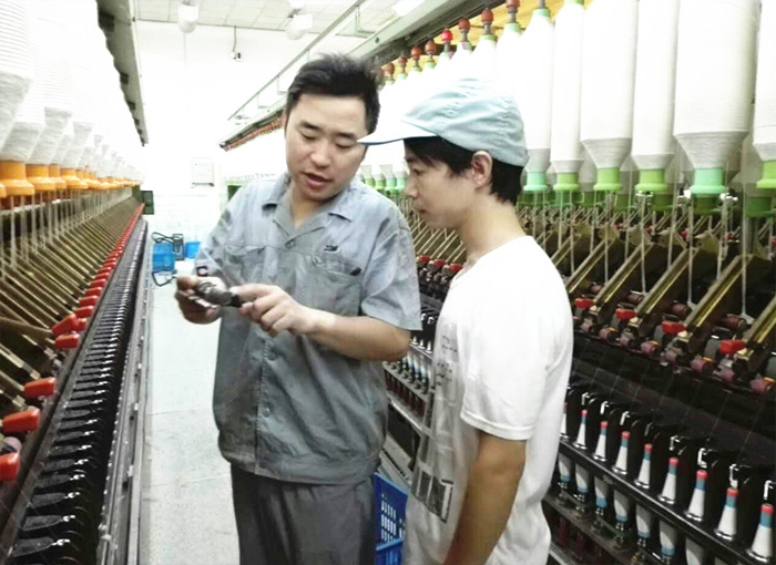 趙輝是五分廠(chǎng)二車(chē)間細紗工段一名普通的平楷車(chē)隊員,今年二月份進(jìn)廠(chǎng),是個(gè)活潑開(kāi)朗帥氣的大男孩。剛來(lái)的時(shí)候,他對細紗機的整體構造和操作是一頭霧水,但他善于學(xué)習,每天緊緊跟在老師傅身后,觀(guān)看師傅們操作的每一個(gè)動(dòng)作,不放過(guò)一個(gè)細節。不僅如此,他每天早來(lái)晚走,下班前都把當天學(xué)到的知識用小本子逐條記錄下來(lái),有不懂的問(wèn)題第二天上班就向師傅請教。車(chē)間里的老員工們都被他這股子認真勁所感染,只要趙輝問(wèn)什么,師傅們都毫無(wú)保留地一一答復,直到他弄懂為止。功夫不負有心人,通過(guò)不斷地學(xué)習摸索,現在趙輝的操作技能進(jìn)步飛快,能獨立完成所負責區域內的各項工作任務(wù)。